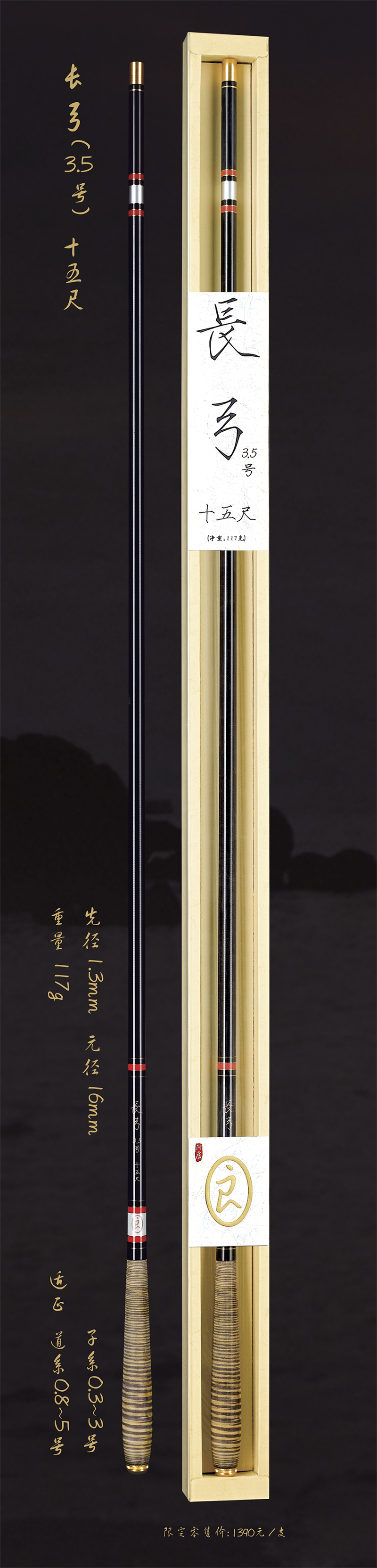 深圳市一良致釣有限公司經過專業(yè)研發(fā),反復調試現推出長弓3.5號十五尺,長弓3.5號十八尺,長弓4號十六尺三款新品釣竿。